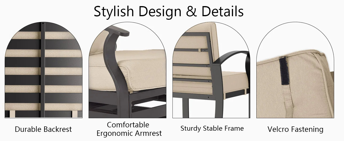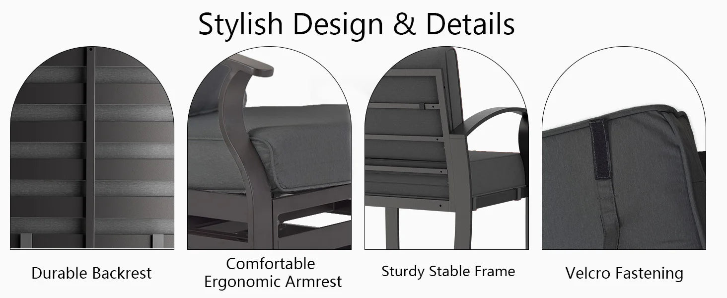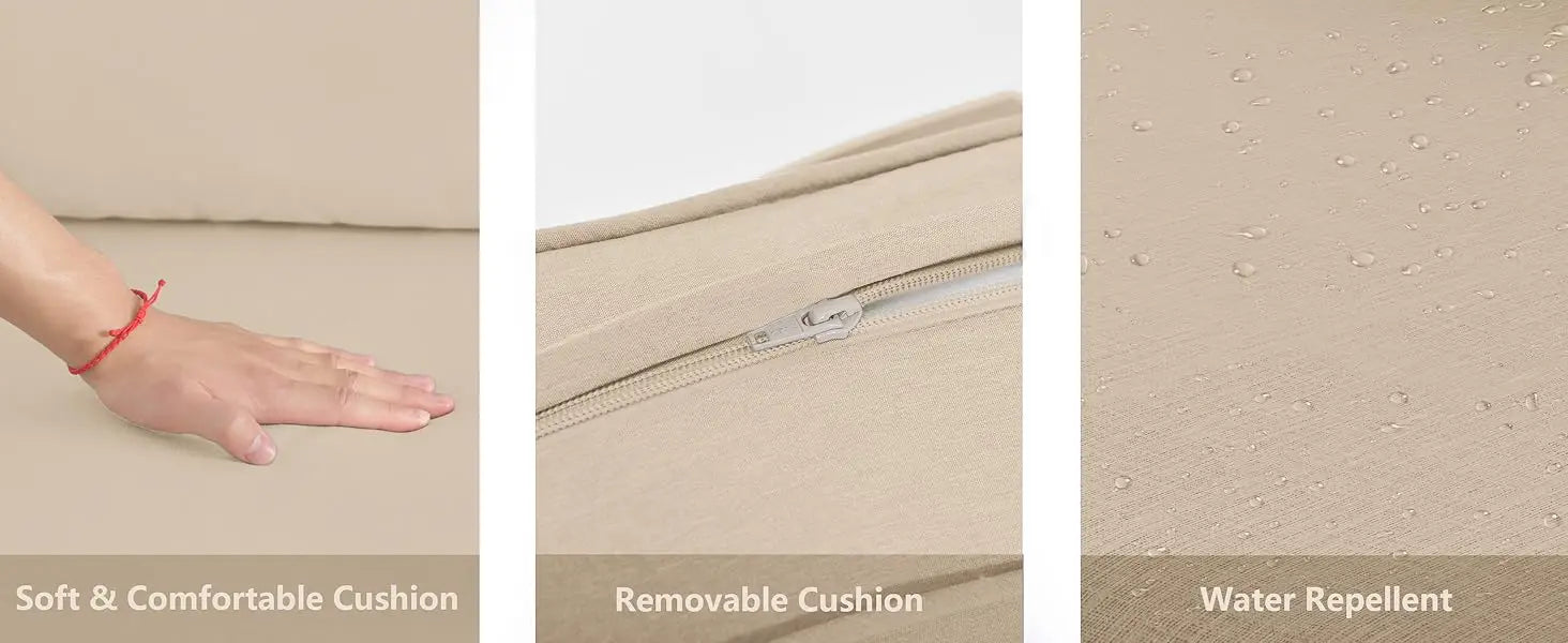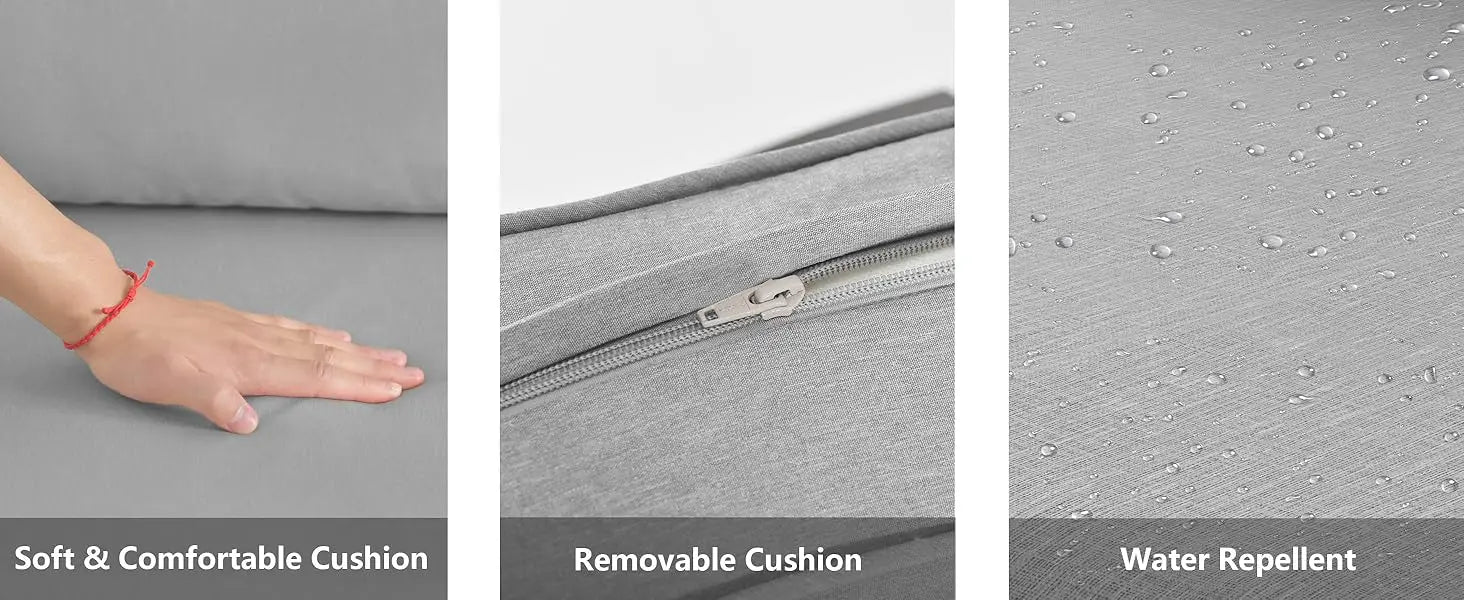- Cushions: UV-resistant, water-repellent fabric (if included)