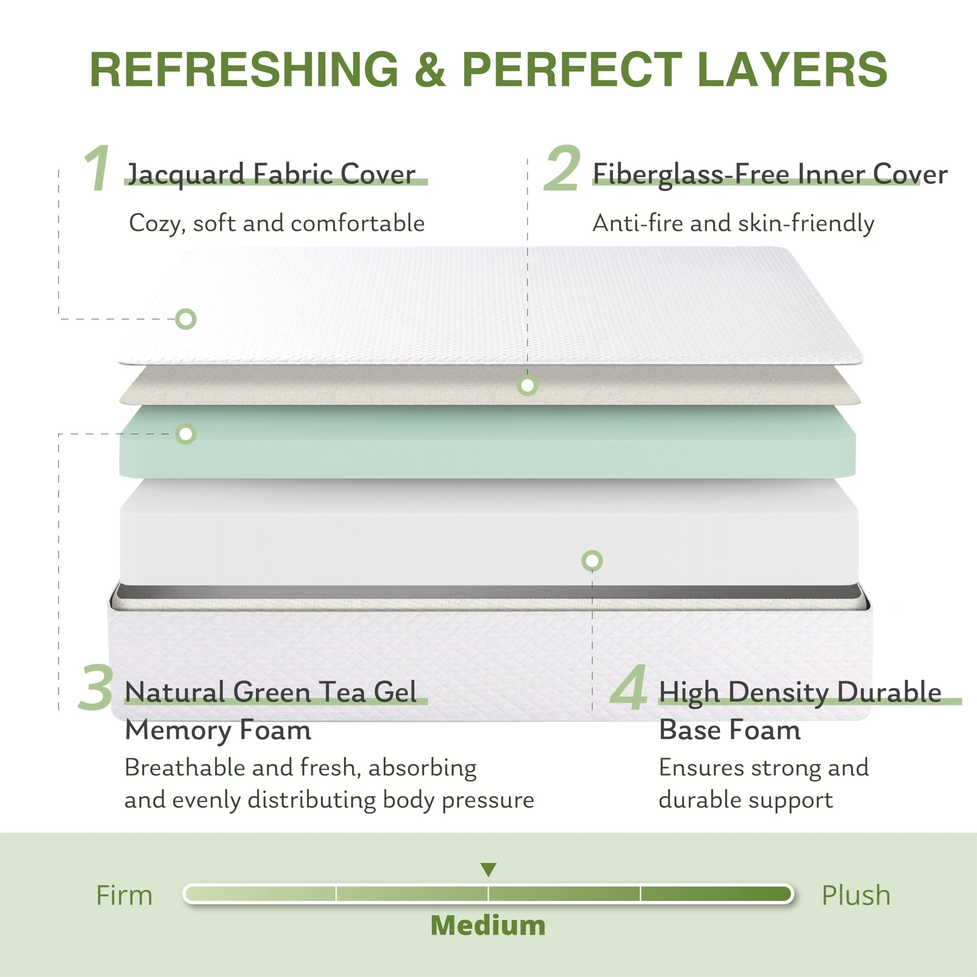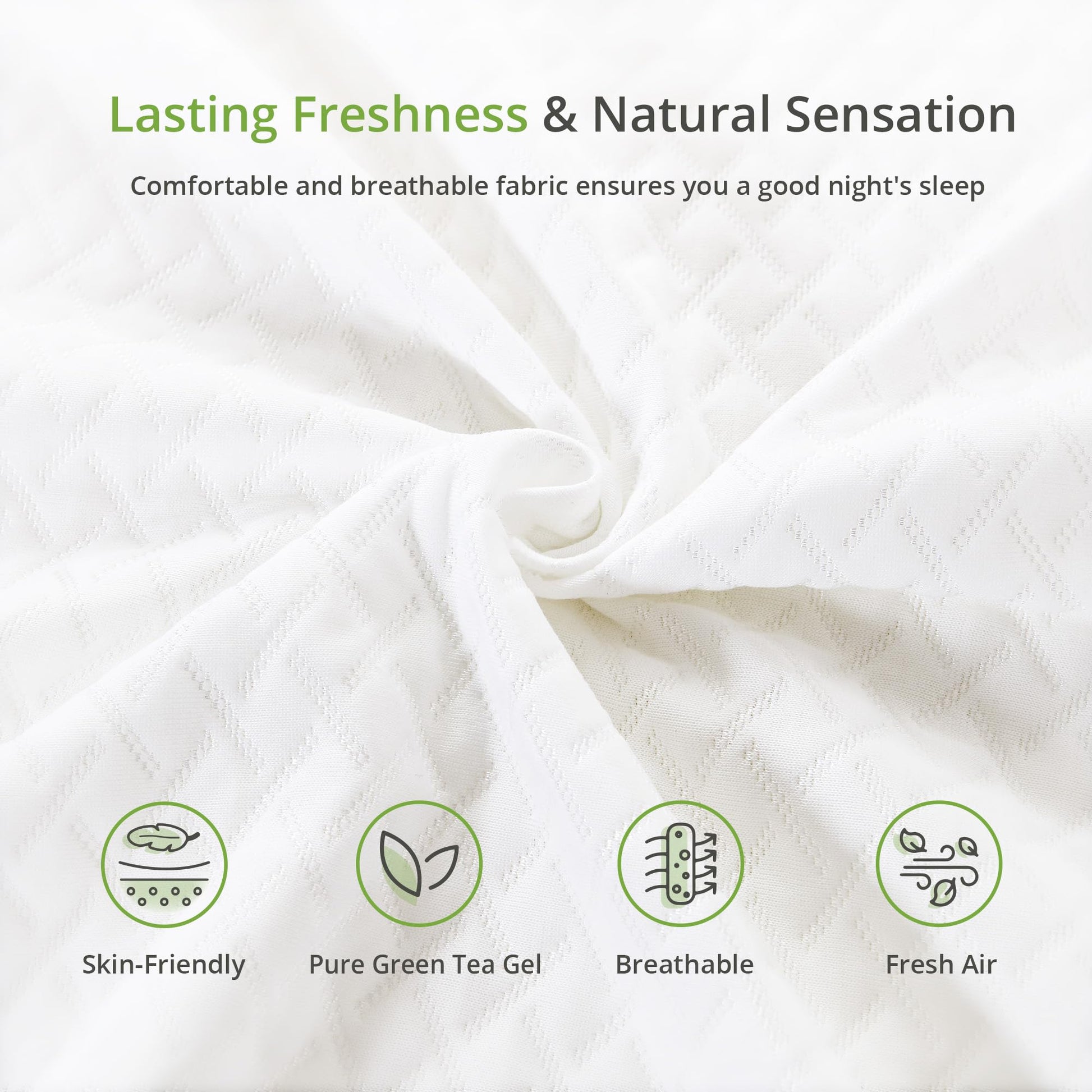 - Refreshing Cool Sensation: The process we use makes the mattress have a special bubble hole structure, which has good breathable airflow to keep a peaceful sleep. We also infuse it with pure natural green tea gel, which helps regulate body temperature and keeps body cool and fresh.